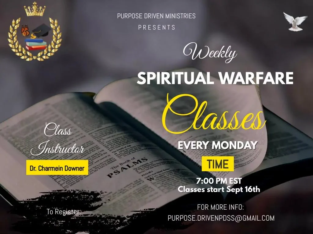 Name * First Name Last Name Email * Phone (###) ### #### The cost of the classes are $75.00 ea class. There are a total of 6 classes each lasting 4weeks. This Spiritual Warfare program is 6 months long and will need your dedication for the entire length in order to graduate. You will be sent an invoice via email for the cost at the begining of each class. This invoice must be paid before the syllabus will be released to you. * Please Type "I understand" below Any Questions Please Ask Here Thank you! Registration Registration Registration